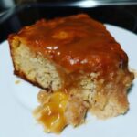 - Immediately pour the pudding mixture over the warm cake, using the back of a spoon to guide the pudding into the holes and spreading any extra over the top.