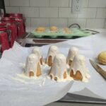 - Cover the entire structure with white buttercream, using an angled spatula to smooth the transition between the layers into a ghostly shape.