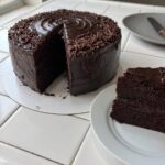 This cake is best served in thick slices on a plain white plate. It does not need much help, but a tall glass of cold milk is the perfect partner for the rich chocolate layers. If you are serving this for a special occasion, you might want to try it alongside a chocolate fudge cake to give your guests a variety of chocolate textures to choose from.