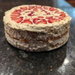 Put the pan in the fridge for at least 8 hours or overnight to let the crackers soften. When you are ready to eat, flip the cake onto a platter, peel off the liner, and frost the outside with the remaining whipped cream. Garnish with your extra berries and serve right away.