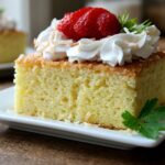 This decadent Strawberry Tres Leches Cake 3 features a warm cinnamon-infused sponge soaked in a rich blend of evaporated milk and red velvet liqueur. Finished with a tangy cream cheese whipped frosting and fresh strawberries, it is a sophisticated twist on a classic favorite.